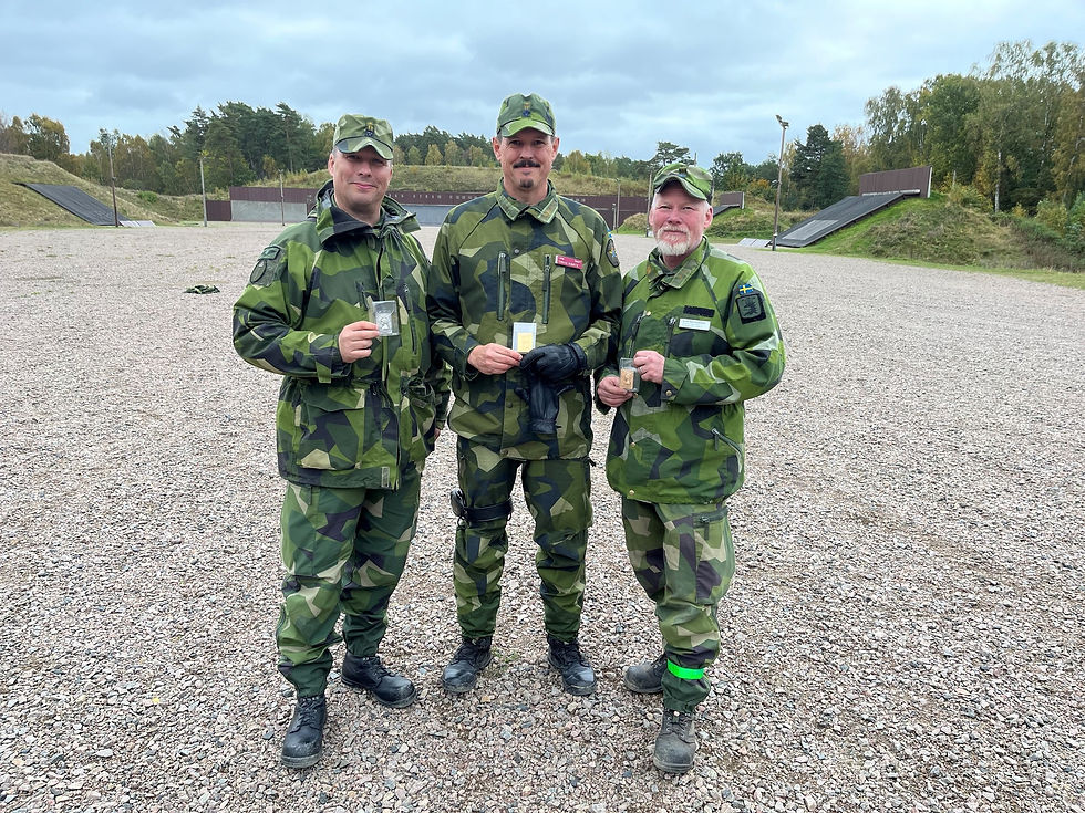 I lördags 11/10, deltog 13 reservofficerare på Östra skjutbanan på P7 i detta trevliga årliga event. I kamratlig samvaro med mingel/fika/kokt korv och spännande skjut övningar.